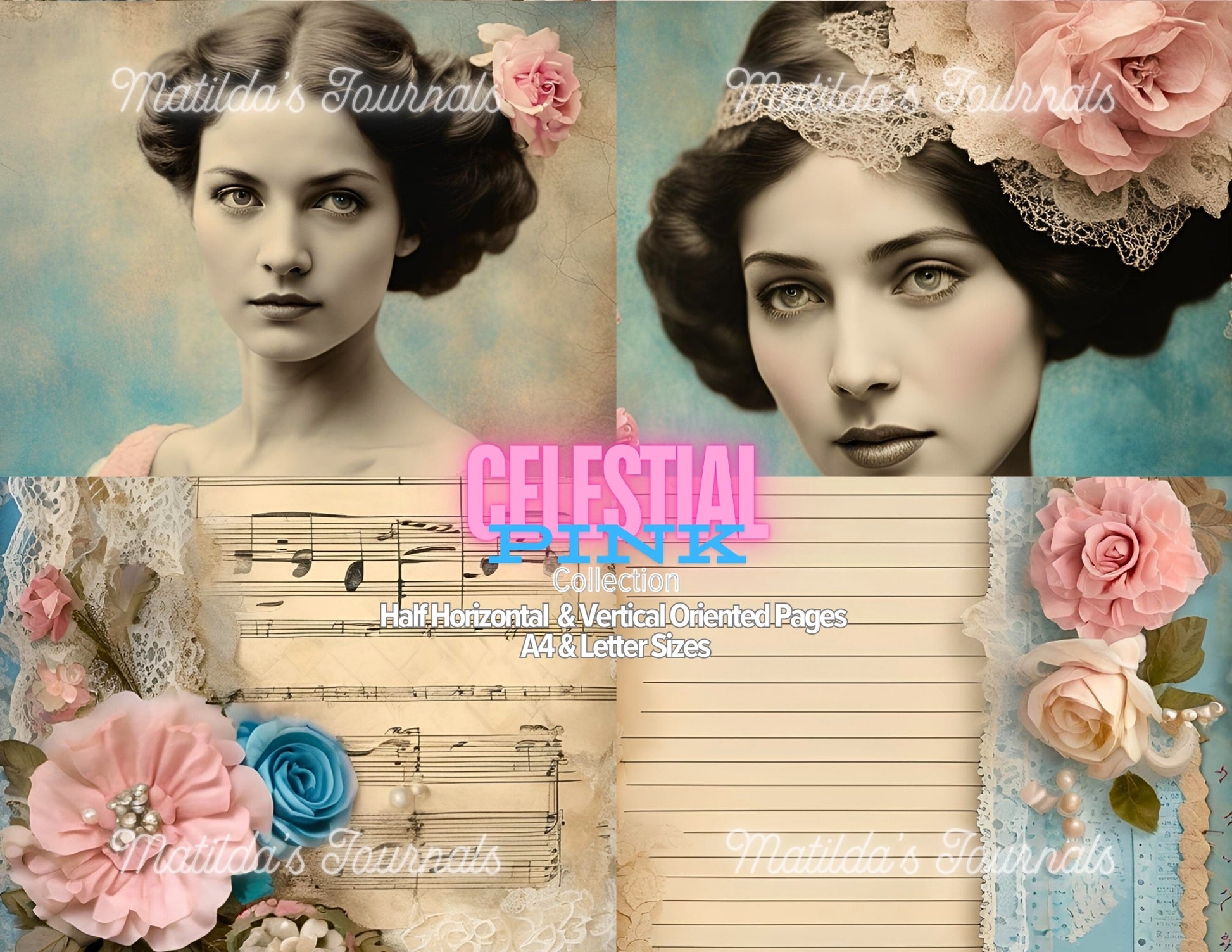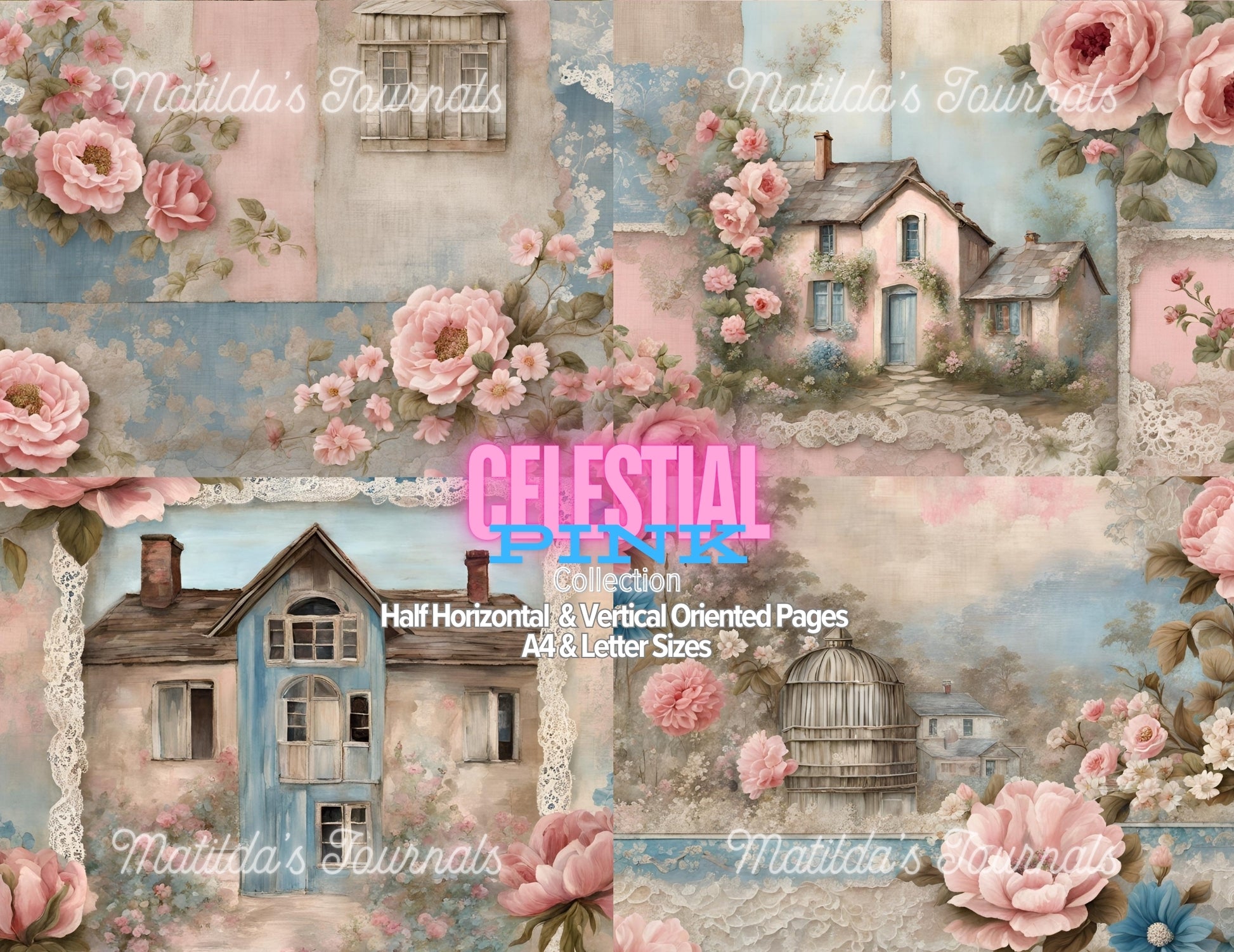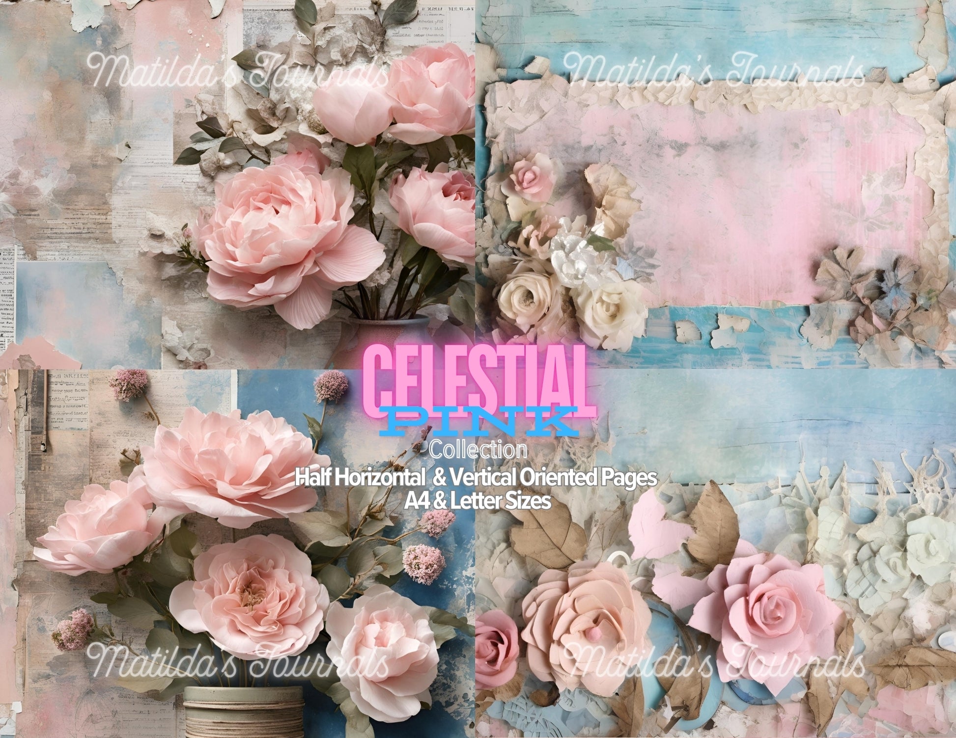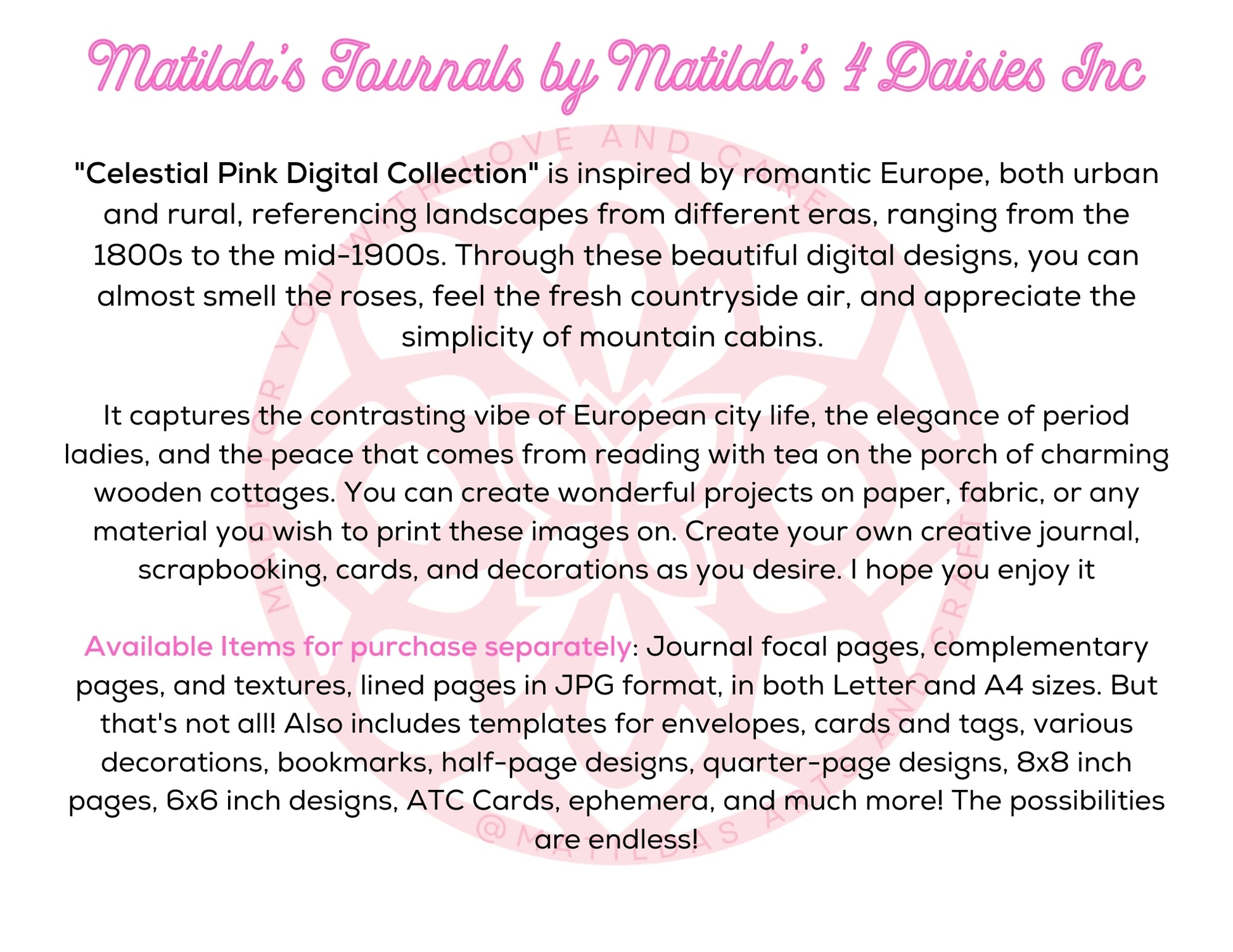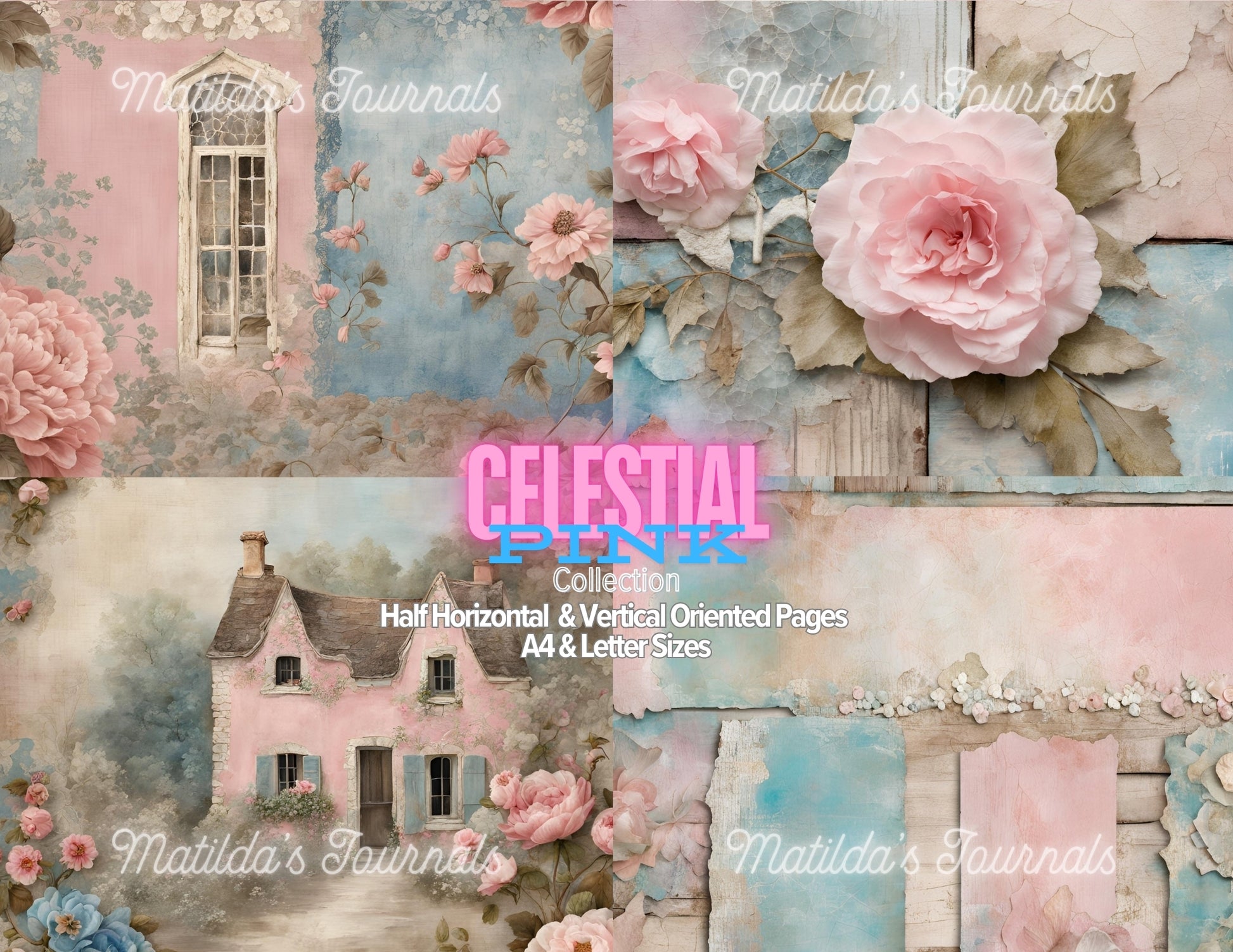 Elevate your creative projects with our Celestial Pink Printable Half Pages. Designed with the romantic charm of vintage Europe, these half-page layouts are perfect for journaling, scrapbooking, card-making, and more. Each design captures the delicate beauty of florals, soft pink hues, and timeless patterns, offering you endless possibilities to express your creativity.