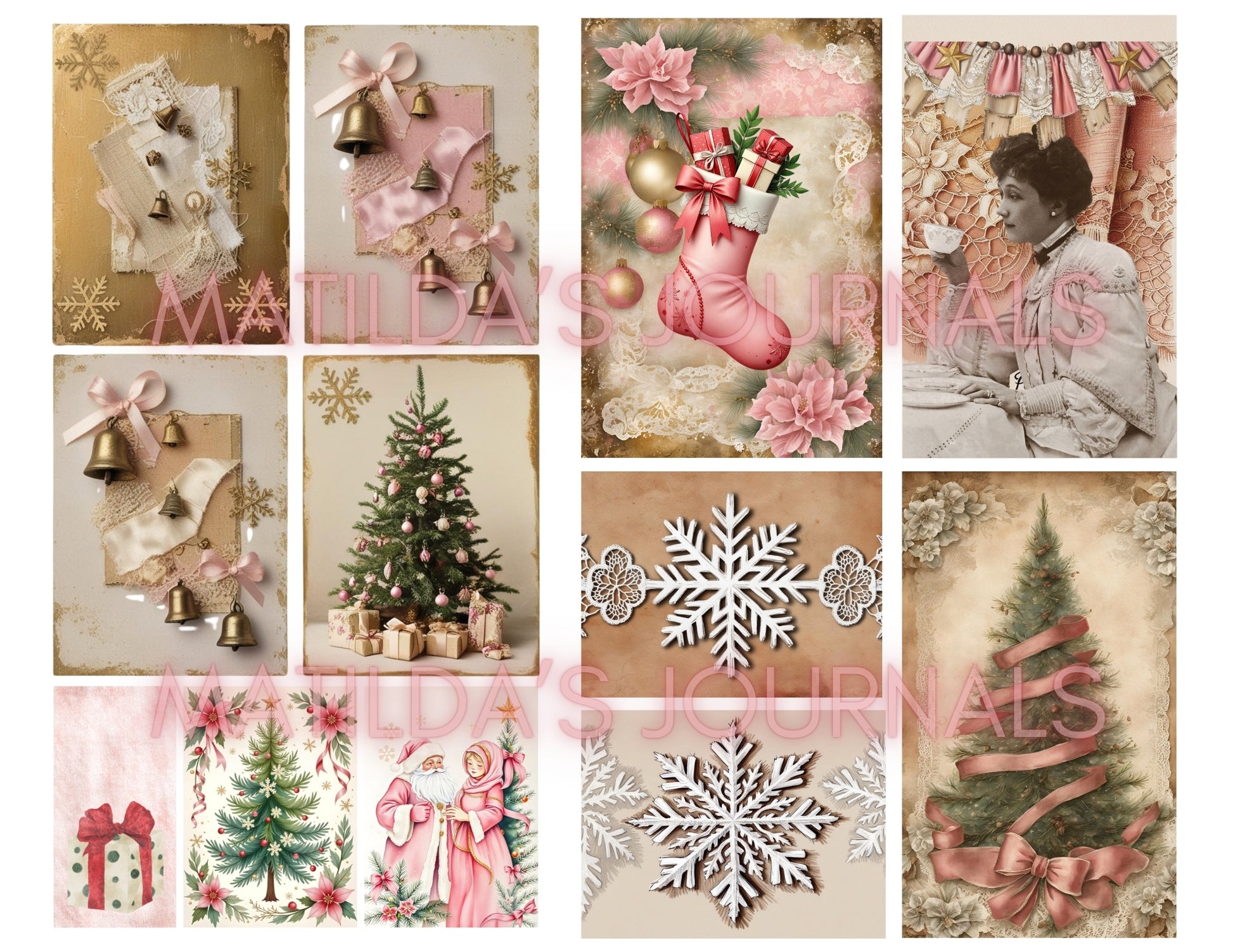 Make your holiday gifting effortlessly charming with Frosted Pink Holiday Cards by Matilda's Journals. This all-in-one digital set provides every type of card you'll need to celebrate the season, from mini gift tags to beautiful postcards, all designed with a unique frosty pink vintage flair.