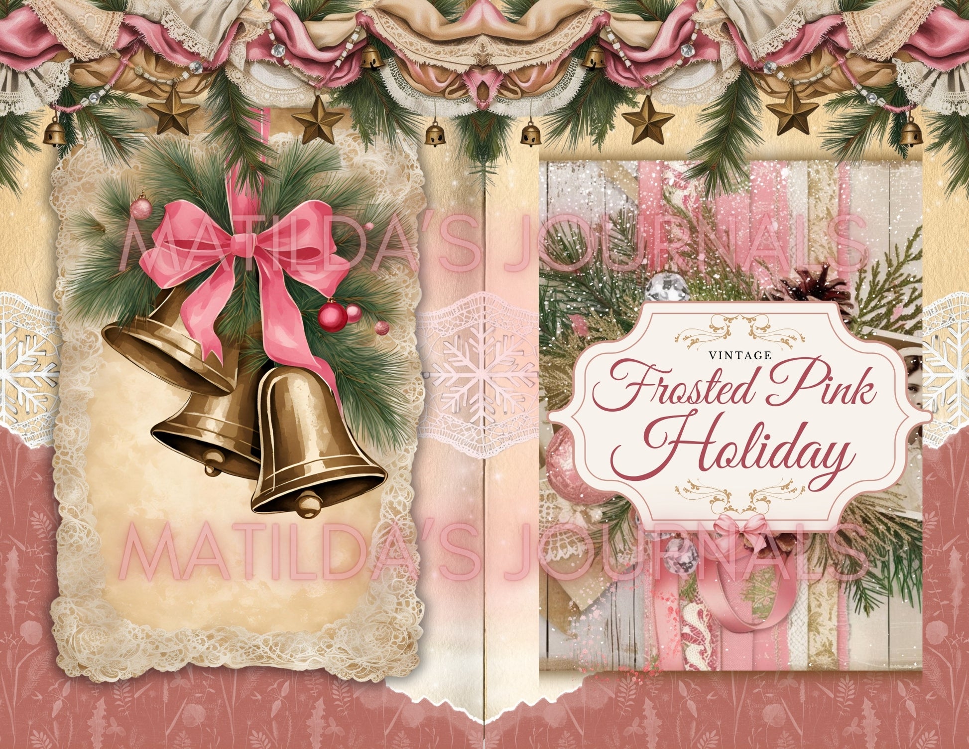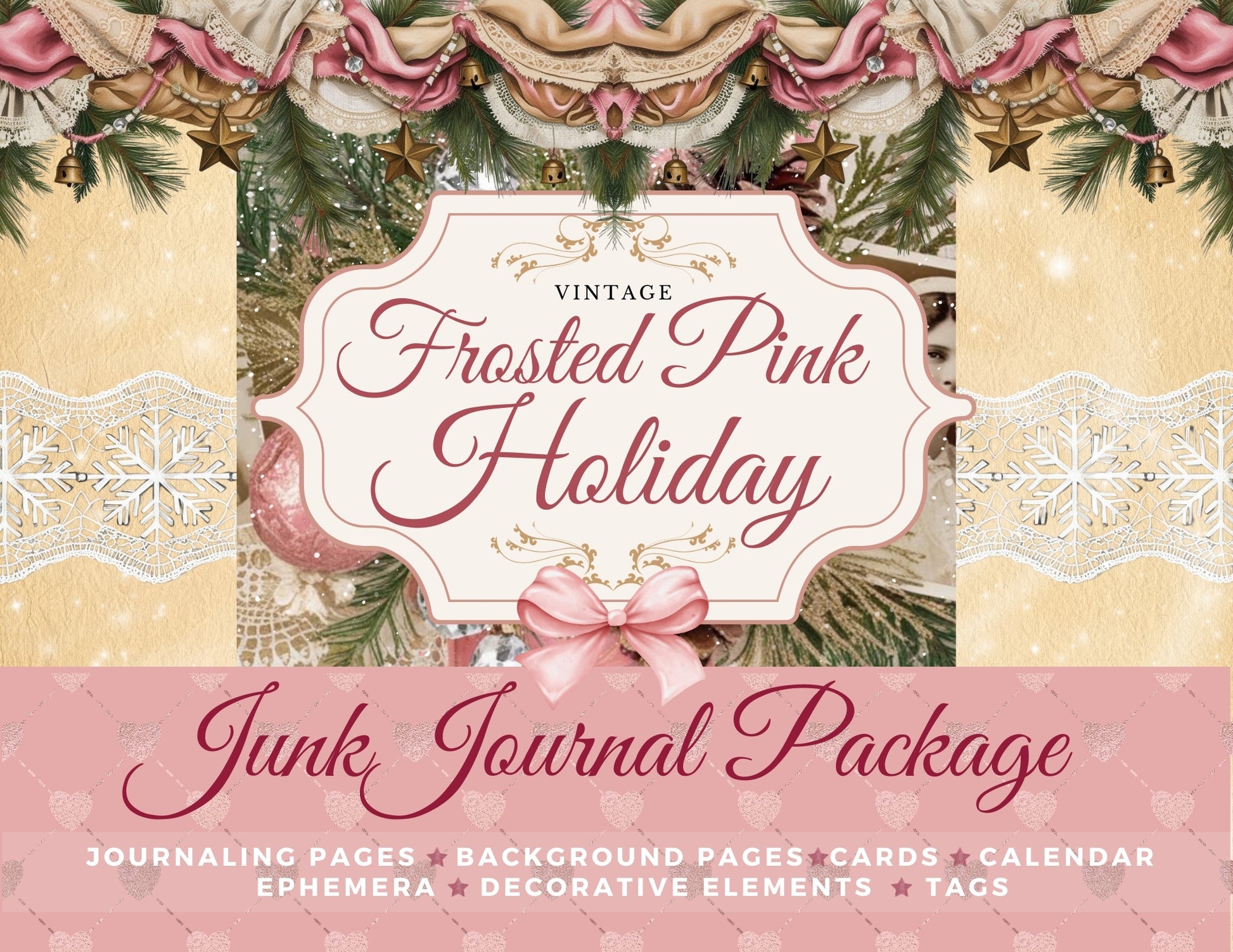 Frosted Pink Holiday JunkJournal - Digital Printable Collection