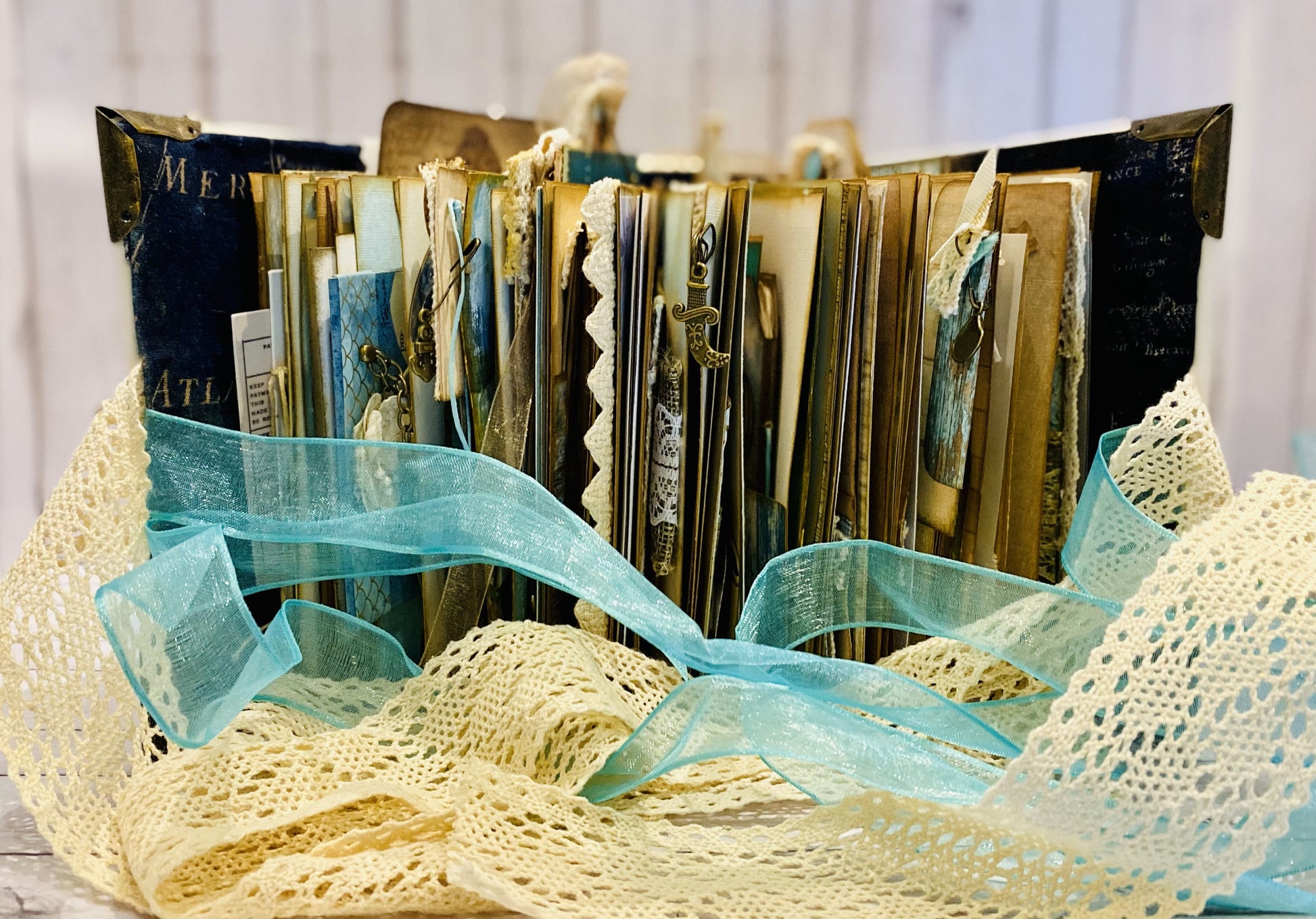 All my journals come with a large envelope filled with ephemera, stickers, paper scraps, washi tape, lace, and a variety of miscellaneous embellishments you’ll love to start creating with right away.